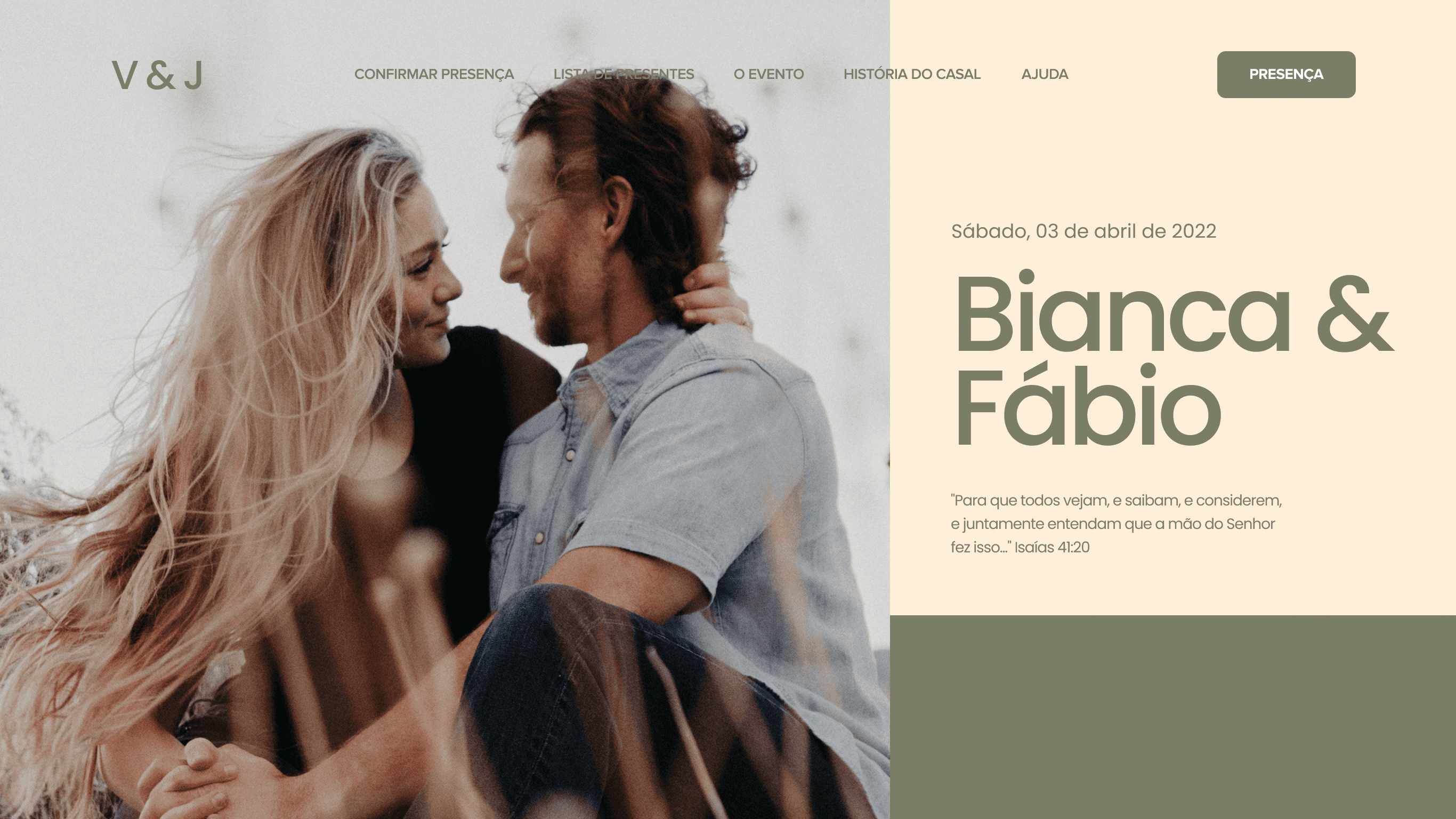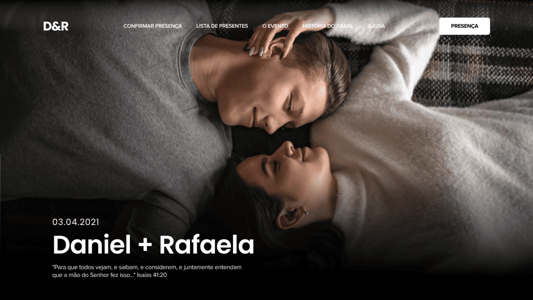 A Wedy veio como o primeiro divisor de águas no meu caminho, trazendo comodidade para meus casais, a facilidade de receber presentes de forma ágil e dentro de um site todo personalizado para eles, aliás, um dos poucos que podemos realmente atualizar em tudo! Desde a foto de fundo, até as cores escolhidas em paletas personalizadas, sem contar o domínio próprio.